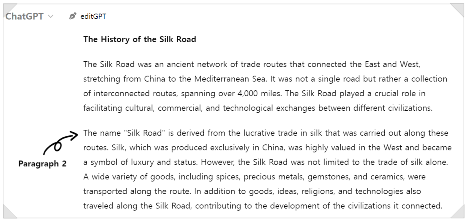 다음은 ChatGPT가 단락 2와 관련하여 만들어준 문장입니다.