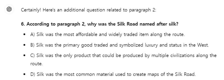 근데 챗GPT가 만들어서 그런지 시중 문제에 비해 퀄리티가 높은 것 같진 않네요..!
