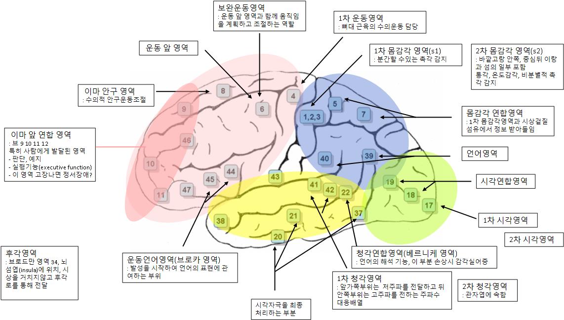 또한, 대뇌피질의 영역을 기능적으로 나눈 '브로드만 영역'이라는 것이 있는데