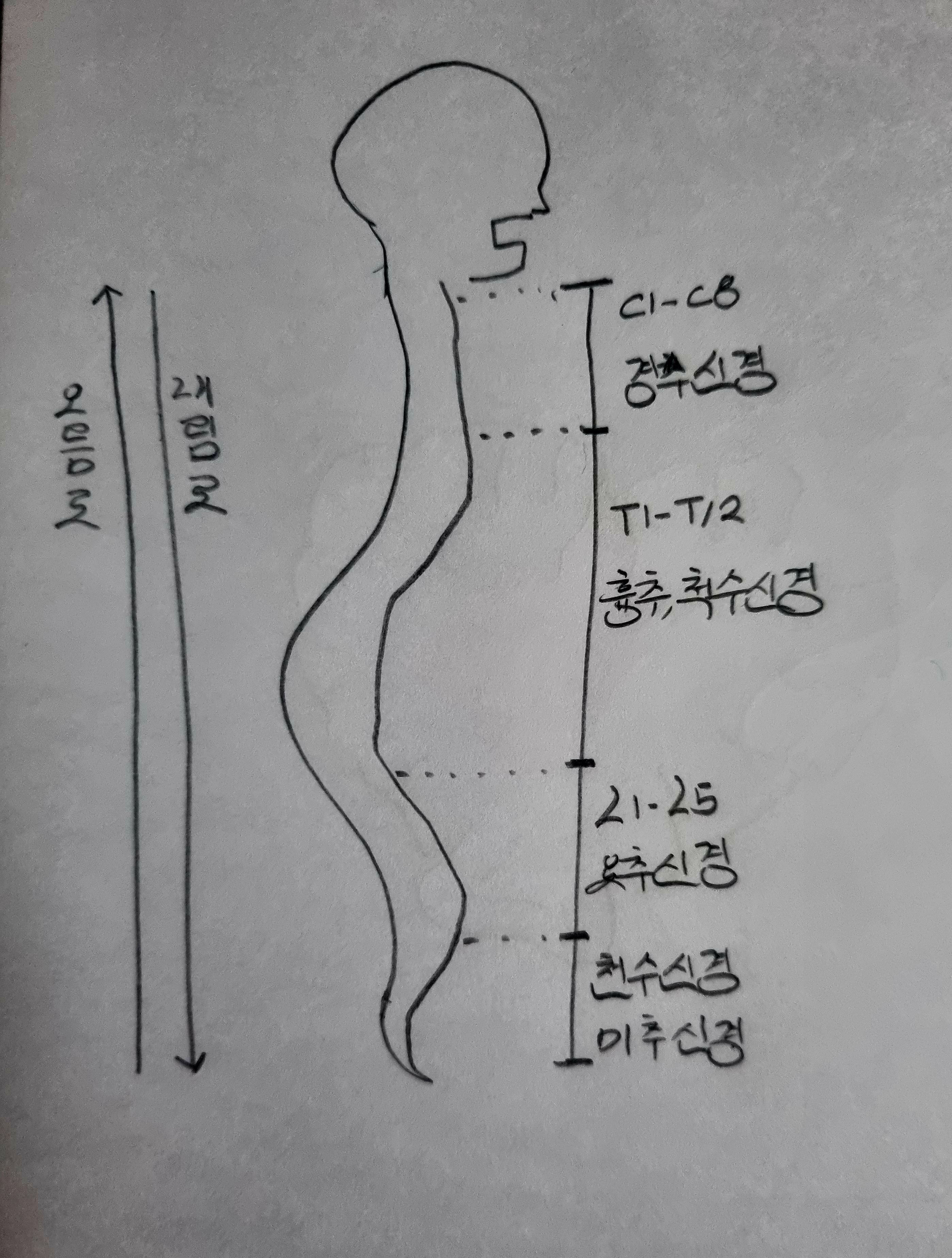 척수는 척주(vertebral column) 내 원기둥 형태의 구조를 말하며,