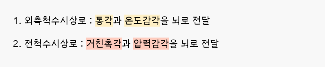 신경 신호의 전달 경로는 오름로와 내림로 구분되며, 각각 '상행감각로'와 '하행운동로'로 부르기도 합니다.