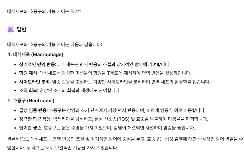 대식세포와 호중구의 기능 차이 (출처 : 뤼튼)