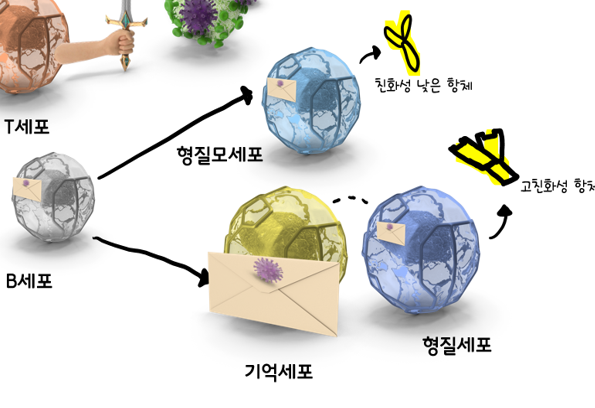 그 기억을 기반으로 항원에 대한 친화성을 강화시켜 다음에 또 같은 항원이 침입했을 때