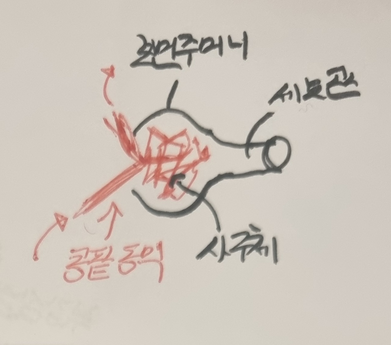 몸 속에서 재사용되거나, 날숨(폐)으로 나가거나, 땀으로 배설되지 않은 물은 '오줌(콩팥)'으로 배설되게 됩니다.