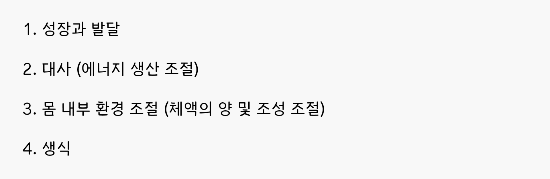 '표적 세포'나 '표적 기관'의 기능을 조절하는데, 다음으로 기능을 정리할 수 있겠습니다.