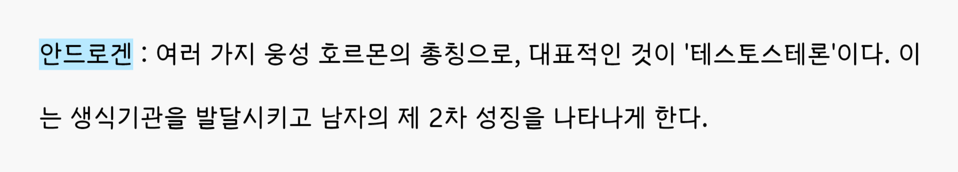 a. 정소 호르몬 (웅성 호르몬) : Androgen(Testosteron)