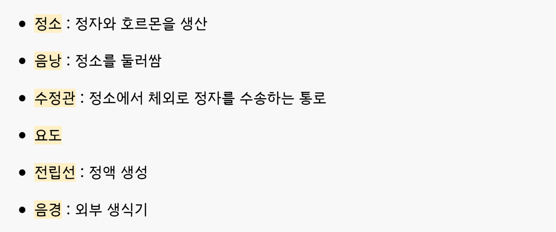 남성과 여성의 생식기관을 구분하여 정리해보도록 하겠습니다.