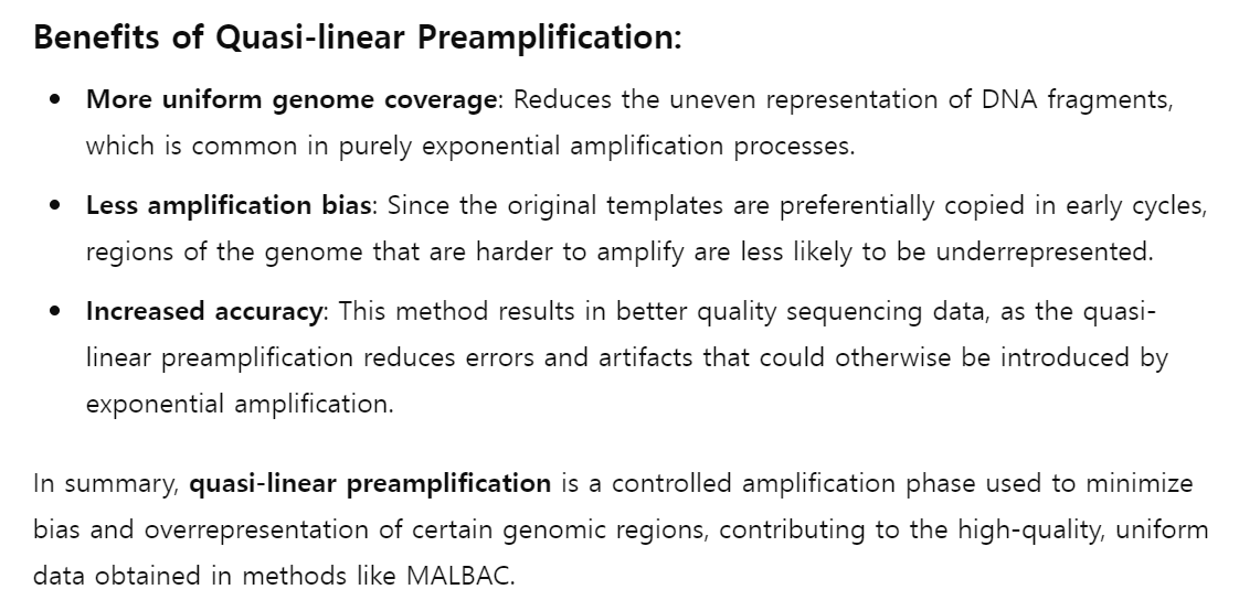 "Whether you use MALBAC, MDA, or an even newer WGA method like LIANTI or META-CS will depend on your goals, the type of sample you have, and what genetic aspects you are looking for." - seqwell(동일 링크 출처)