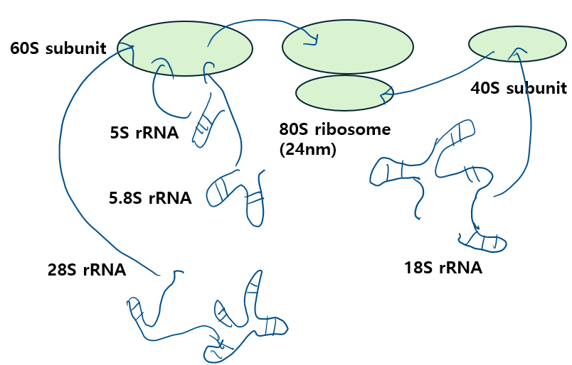 3개는 28S, 18S, 5.8S라는 large subunit이고, 다른 하나는 5S의 조그만 subunit입니다.