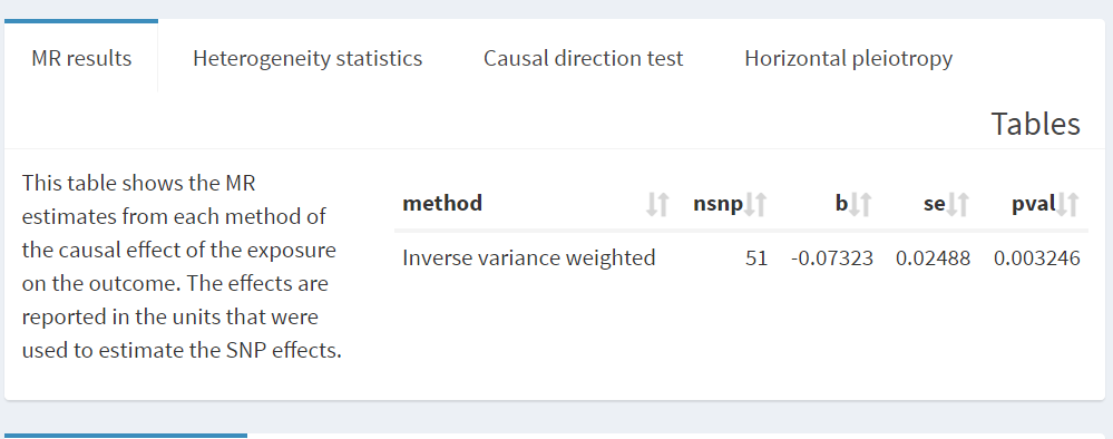 따라서 IVW를 활용해서 exposure의 outcome에 대한 casual effect가 있는지 결과값으로 도출된 p값을 통해(p < 0.05) 유의미한지 확인하고,
