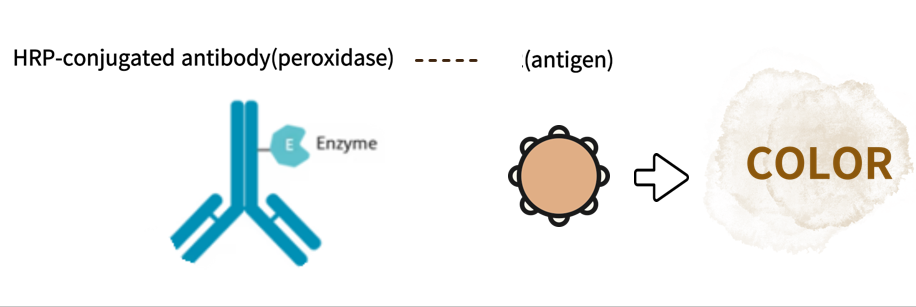 항원 항체 반응이 일어나면 항체에 붙은 효소가 활성화 되고 그러면 이후 기질을 넣어주었을 때 효소가 기질과 반응해 발색성 침전물을 생성하기에 항원의 분포 및 위치를 확인1)할 수 있습니다.