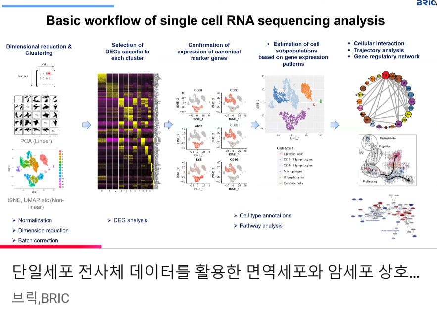 18일차에서는 어제 본 브릭 웨비나 영상인 '단일세포 전사체 데이터를 활용한 면역세포와 암세포 상호작용 연구'에 대해 정리해보는 시간을 가져보겠습니다.