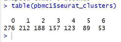 재미삼아서 해상도를 0.3으로 낮춰서 pbmc1이라는 변수를 만들고 똑같이 빈도수를 확인해보았습니다.