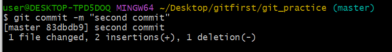 이번엔 "second commit"이라는 이름으로 지정해보겠습니다.