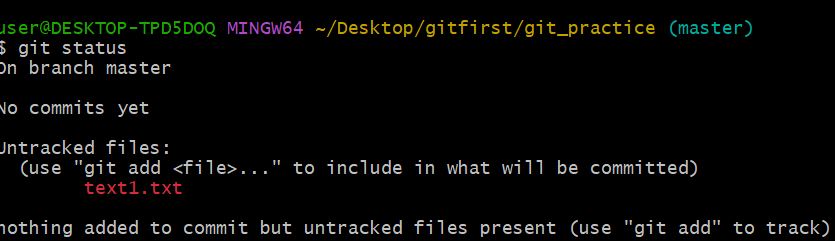 전에 만든 git_practice의 text1.txt 파일을 열어서 아무 말이나 적어봅시다.