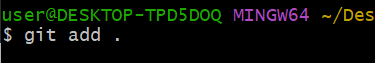 위에서 말했듯 이렇게 . 만 입력하면 Working Directory에 있는 모든 파일을 Staging Area로 보낼 수 있습니다. 특정 파일만 보낼 경우 파일 이름을 입력해야 하니 유의 바랍니다.