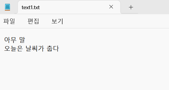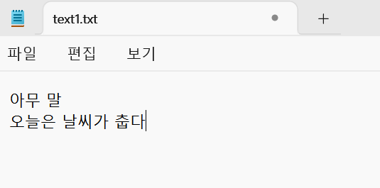 그리고 다시 text1.txt를 확인해보겠습니다.