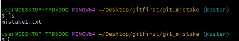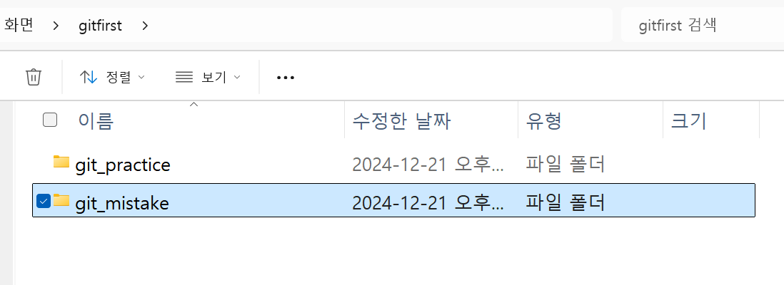 실습을 위해 'gitfirst'에 또 다른 'git_mistake' 파일을 새로 만들어주었습니다.