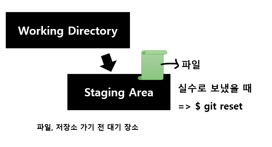 이때 $ git reset 명령어를 입력하면 staging area로 간 대기 중인 파일 수정사항을 다시 working directory로 보낼 수 있습니다.