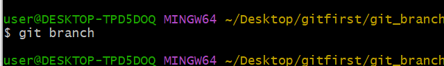 먼저 $ git branch를 사용하여 현재 브랜치 목록을 봅시다.