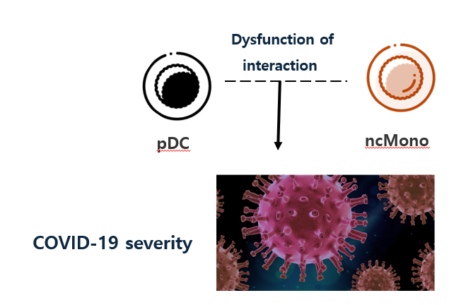 지금까지 연구결과를 소개했는데 결과 중 일부만 소개하고 소개한 내용에 제 해석도 들어간지라 오류가 있을 수 있기에 자세한 내용은 논문을 직접 읽어보시길 추천드립니다. 연구 결과를 요약하자면, 본 논문에선 첫째, severe COVID-19에서 monocytes 혹은 DC 그중에서도 특히, ncMono의 dysfunction을 확인했습니다. 예로, moderate에서 높게 나타나던 ncMono의 IFN response가 severe에선 확연히 줄어듬이 확인되었죠.