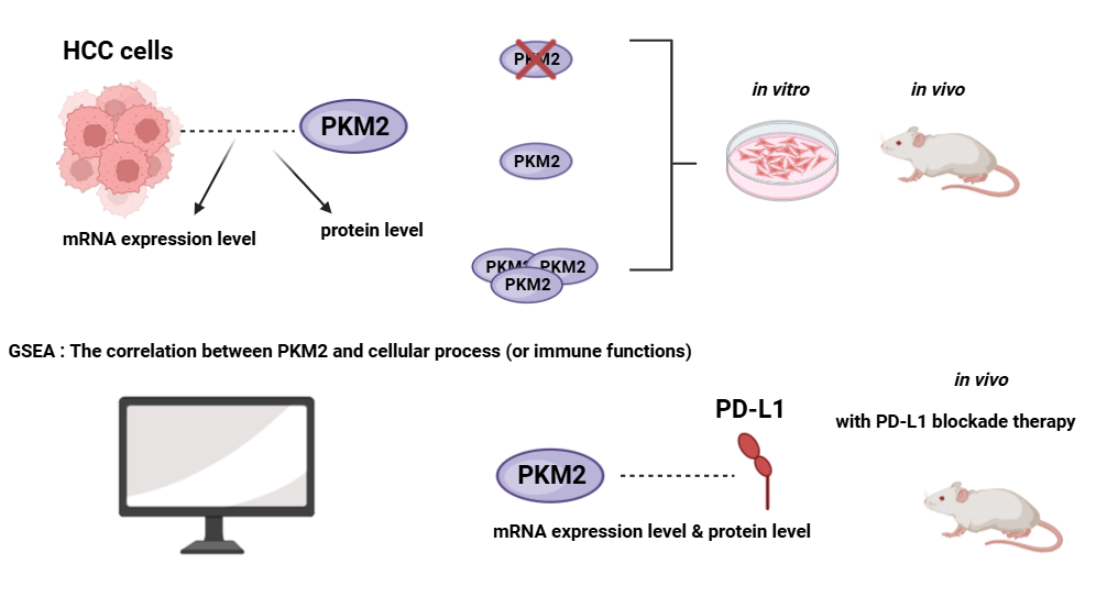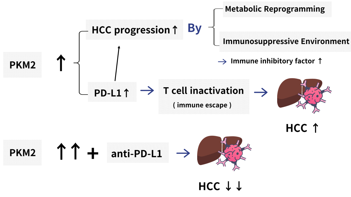 본 논문은 말 그대로, PKM2라는 효소가 면역 억제 환경을 유도함으로써 Hepatocellular Carcinoma(HCC)라 불리는 간세포암의 진행을 유도함을 입증하는 내용이 담겨 있었습니다.