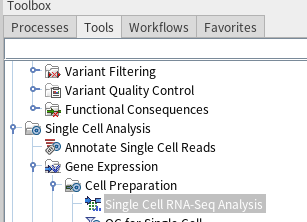 이제 참조서열까지 다운받았으니 annotate되고, trimming된 리드 데이터들을 참조서열에 매핑해보겠습니다. 참고로 매핑(mapping)은 시퀀싱 데이터의 각 cDNA 서열들이 어떤 유전자의 서열에 해당하는지 이미 밝혀진 게놈 서열과 매칭해보면서 파악하는 과정으로, 이를 통해 각 세포에서 어떤 유전자가 얼마만큼 발현되어 나타나는지 정량적으로 확인할 수 있습니다. 매핑을 위해 다시 좌측 하단 tool box에서 'Single Cell Analysis > Gene Expression > Cell preparation > Single cell RNA-seq Analysis'를 클릭해줍니다.